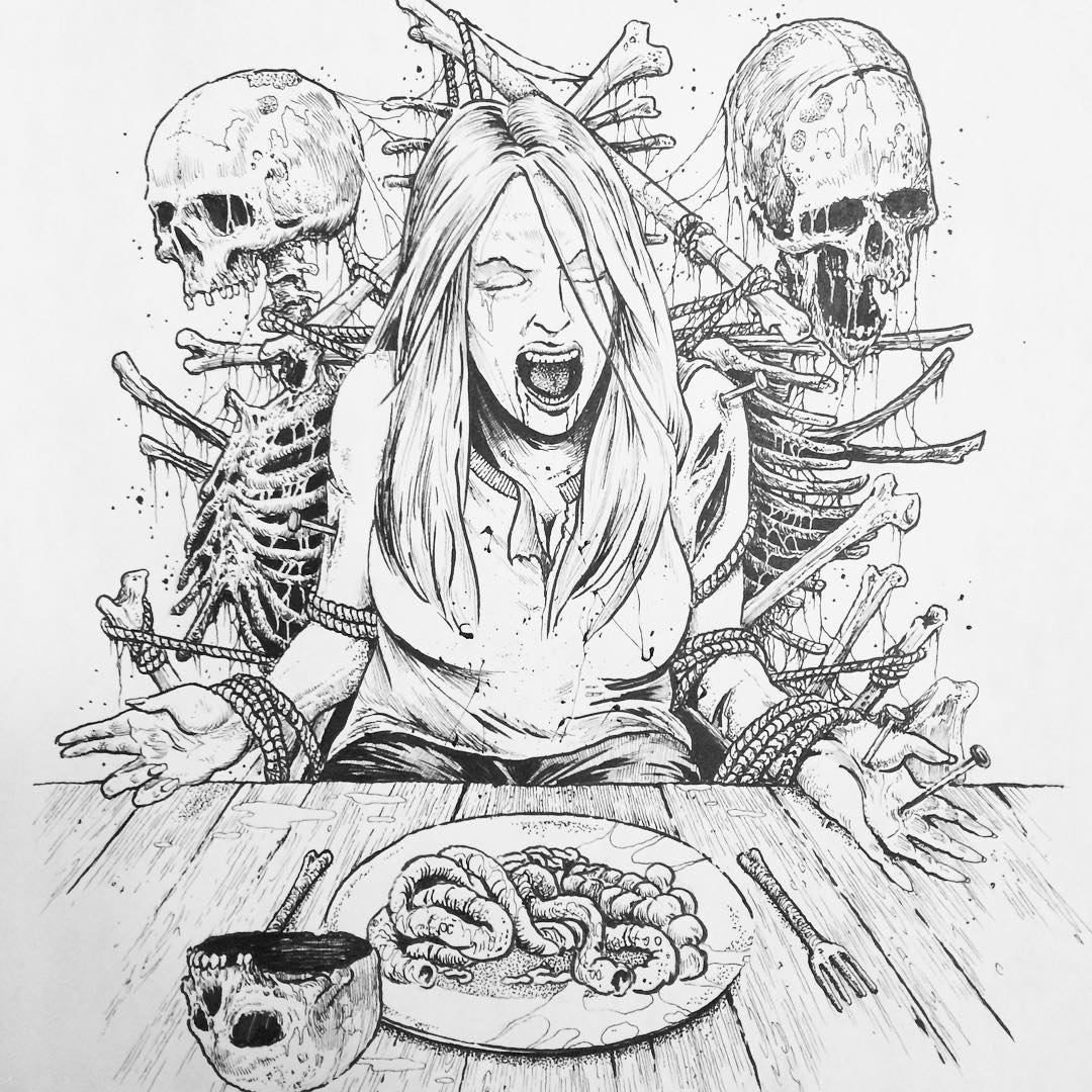 Ilustrador de la escena «underground death metal music». Desde joven ya centro su atención en la ilustración, yendo después a una escuela de dibujo. Sus trabajos te llevan al mundo de las tinieblas.